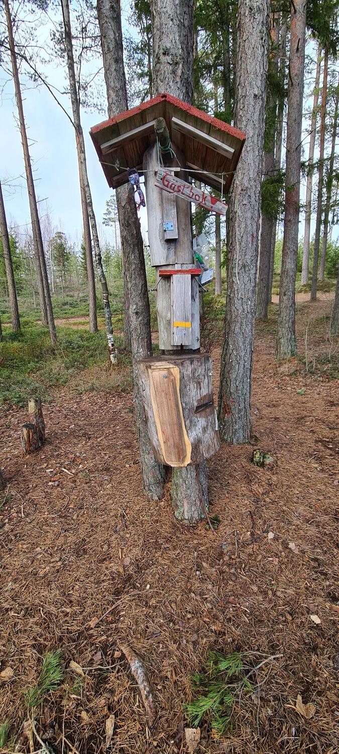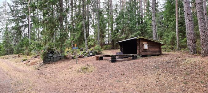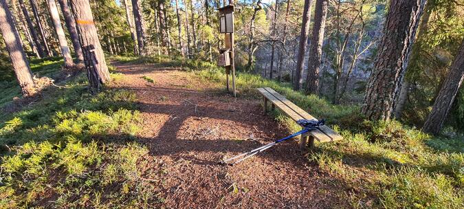 Ett hundratal meter efter Tjyvastenarna erbjuder leden en rastplats – på villkor att man skriver in sig i gästboken.