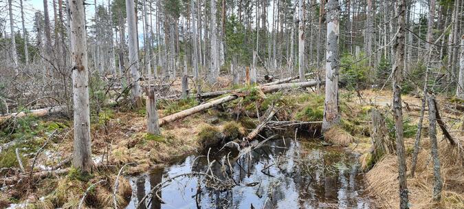Idag ser det lite speciellt ut vid Grässjöbäcken. Ett stort område utgörs av idel döda granar.