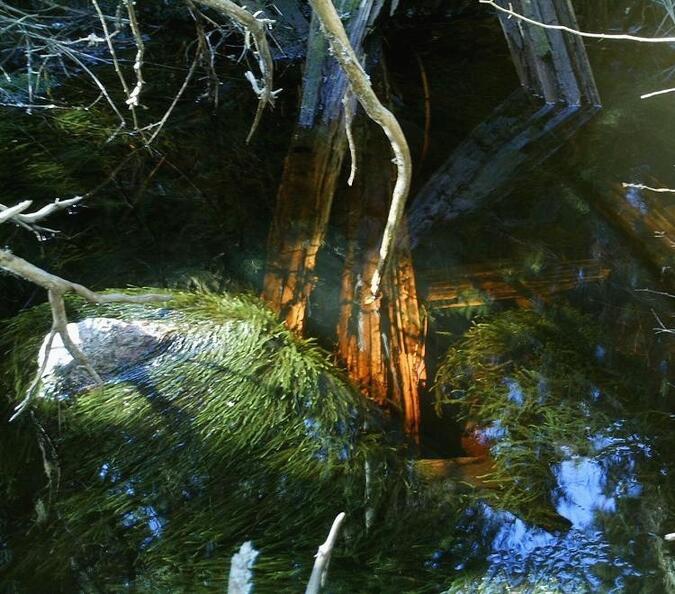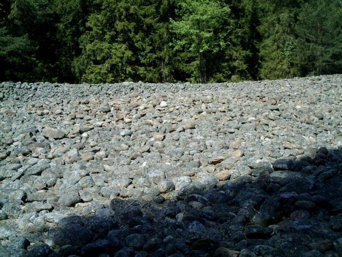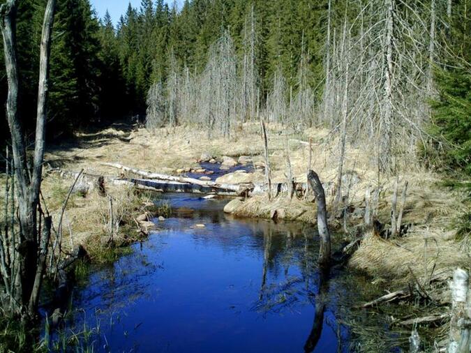 Vattnet går ner i puls efter det vilda stråket och efter en stund i en ibland smått tät skog där lövträden varit dominerande kommer man fram till en gammal bäverdamm men som numera är en ”död skog”. Här kan man göra en avstickare ifrån stigen och vandra ett par hundra meter för att beskåda Kilsbergens kanske mest imponerande klapperstensfält som är en kvarvara ifrån istiden, ser lite lustigt ut med all sten mitt i skogen.