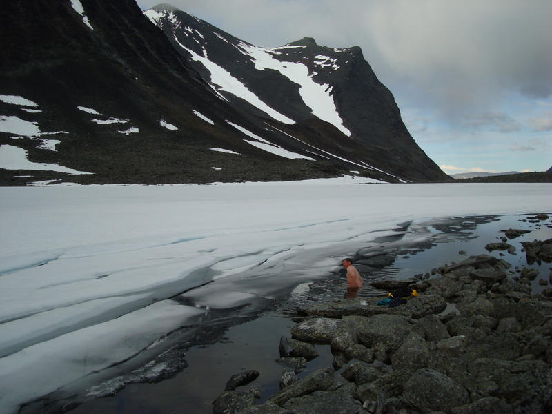 Hälften av oss tog ett uppfriskande isbad i sjön.
