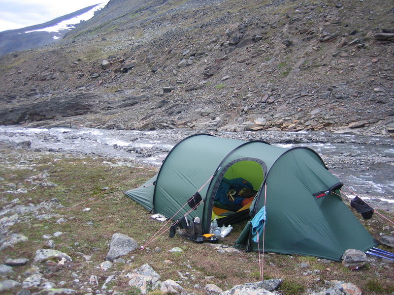 Underbar tältplats i Unna Vistasvaggis östra delar.