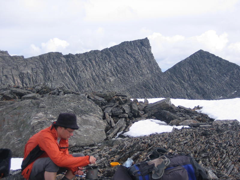 När vi slog läger under Påssustjåkkas stup kändes det nästan overkligt att veta att vi klarat av två av tre mål med den här vandringen. Magnus är en person som alltid tror att "det går". Han kände sig nu helt säker: Det är klart att vi klarar Mårma också. Vi har ju inte använt någon av våra tre reservdagar ännu.